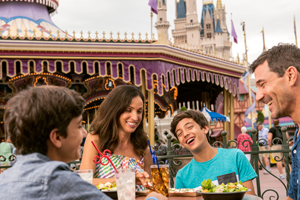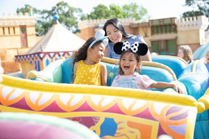 Vuela alto sobre Adventureland en un paseo en alfombra mágica inspirado en la película de Disney Aladdin .